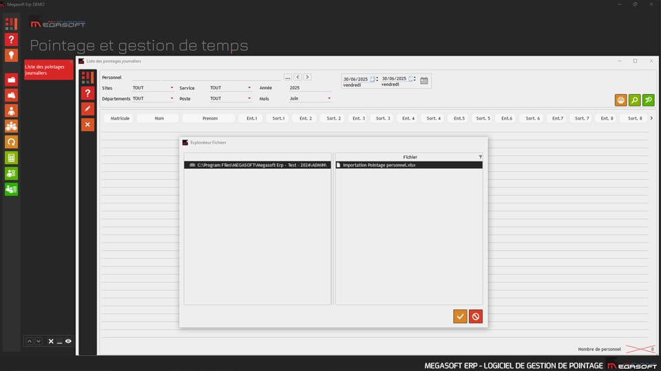 Cette nouvelle Fonctionnalité permet de faire l’importation de fichier texte extrait depuis les pointeuse ZKT dans le logiciel. Ceci est utile dans le cas ou la pointeuse n’est pas connecté au réseau.